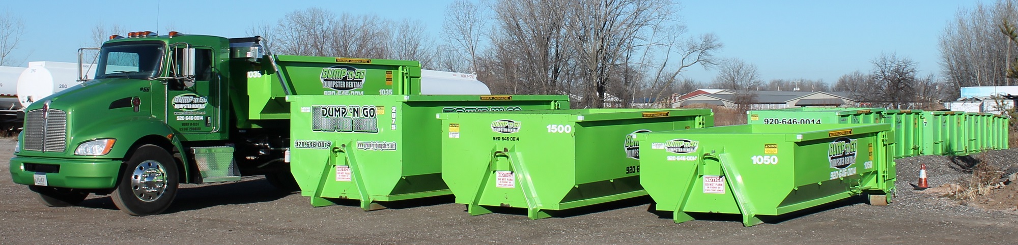 Whether it’s one of our 10, 15 or 20 yard dumpsters, they all work fine for large or small jobs. If you’re not sure of the size, call Dump`N Go at 920-646-0014, we will help you with the right decision. All Prices are for Residential Customers Only. Prices are for a 25 mile service area from our location. Additional charges may apply for deliveries that are outside of our normal service area.
